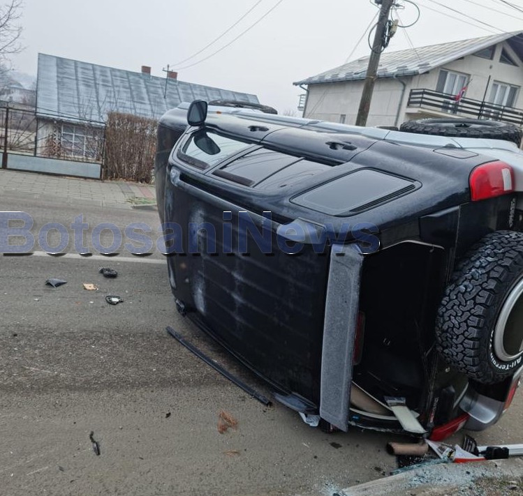 Potrivit DorohoiNews.ro, se pare că șoferița unui autoturism marca Suzuki a pierdut controlul volanului într-o curbă la stânga, a lovit bordura și s-a răsturnat pe partea carosabilă. Din fericire, în urma accidentului nu au rezultat victime, ci doar pagube materiale. Din spusele șoferiței, aceasta a pierdut controlul volanului din cauza apei scurse pe carosabil. Cel mai probabil din cauza temperaturilor scăzute s-a format o peliculă de gheață, fapt pentru care șoferii sunt puși în pericol.