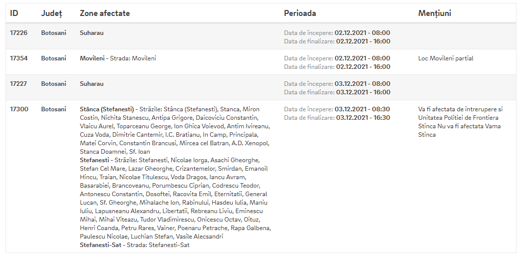 Astfe, pe fondul unor lucrări programate, operatorul de electricitate va face deconectări pe parcursul zilelor de joi și vineri în localitățile Suharău, Movileni, Stânca și Ștefănești. Graficul de intervenție a echipelor de la Delgaz Grid este următorul: