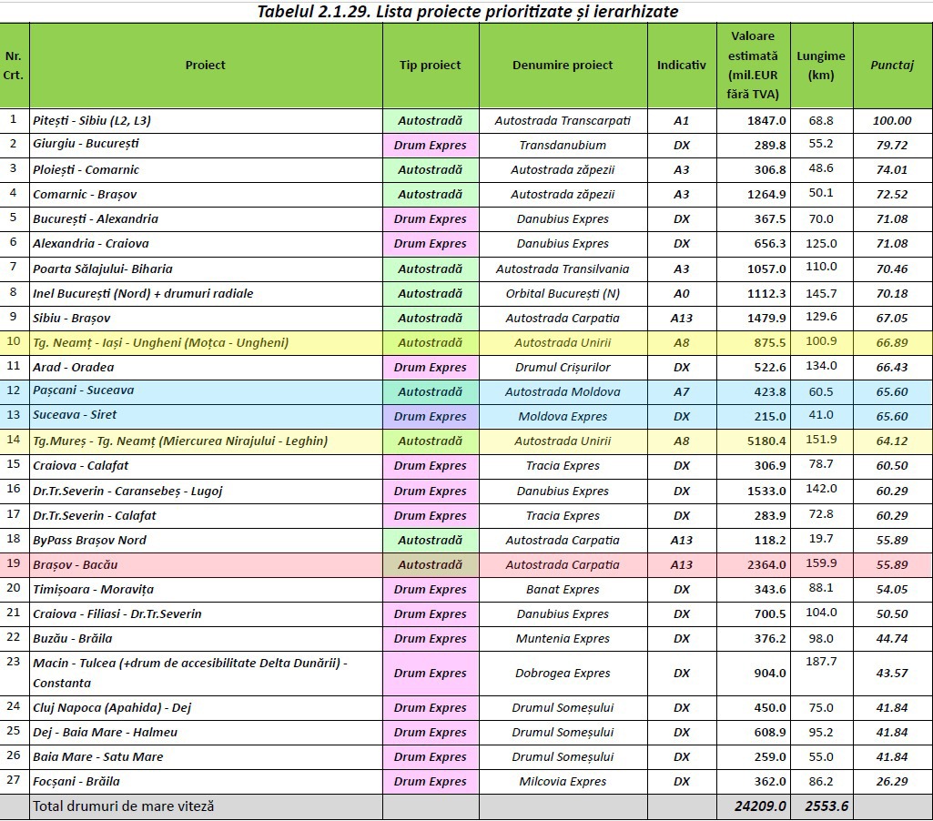 Guvernul a publicat varianta finală a Planului investiţional de dezvoltare a infrastructurii . Proiectele din Moldova nu mai intră în competiţie pentru finanţare: banii vin pe măsură ce fiecare avansează. Autostrada Ungheni-Iaşi-Tg.Mureş are punctaj mai bun decât Bacău-Braşov.