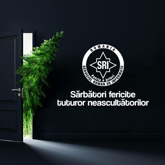 „Sărbători fericite tuturor neascultătorilor”, este mesajul scris pe felicitarea de Crăciun postată pe Facebook de SRI.