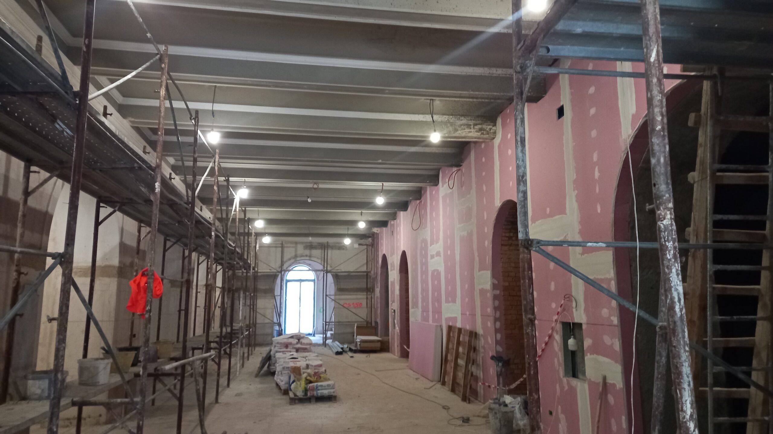 Pe interior, se lucrează intens, etajul 3 având cele mai avansate lucrări. A fost montat liftul, urmând să se aplice varul și, ulterior, să fie montate ușile. Sălile de spectacol au fost dotate cu uși achiziționate din străinătate, care sunt rezistente la foc.
