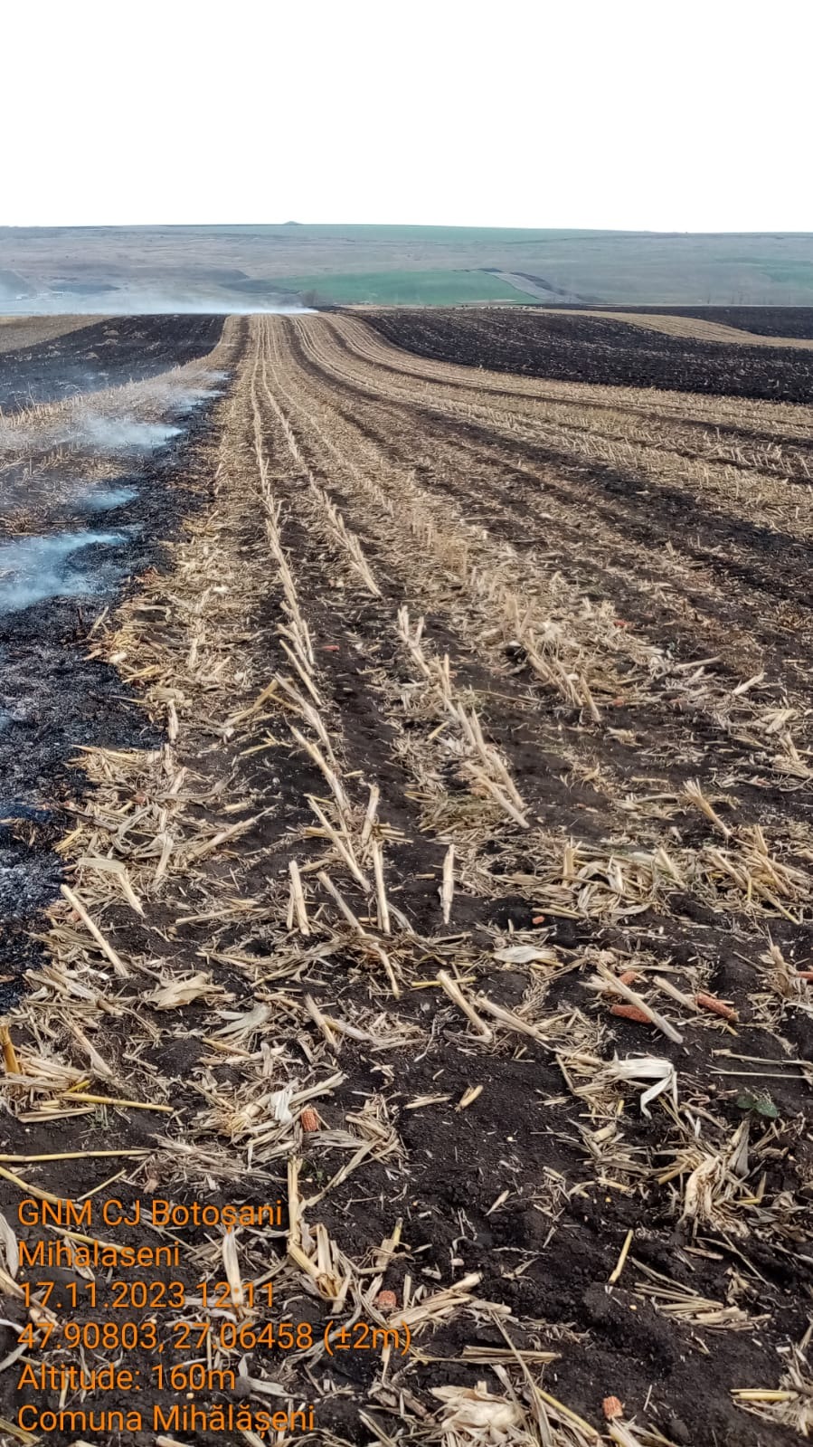 „În baza Protocolul de colaborare încheiat între IGSU-GNM-APIA privind acțiunile de monitorizare a modului de respectare de către fermieri a normelor privind condiționalitatea referitoare la interdicția de a nu arde vegetația uscată pe terenurile arabile și pajiștile permanente situate în siturile Natura 2000 s-a Notificat APIA Botoșani și ISU Botoșani, fiind transmise fotografii georeferențiate și s-a solicitat Agenției pentru Plăți și Intervenție pentru Agricultură Botoșani datele deținătorului cu titlu sau fără titlu care a solicitat cerere de plată în anul 2023 pentru parcela pe care a fost incendiate resturi vegetale”, precizează Garda de Mediu.