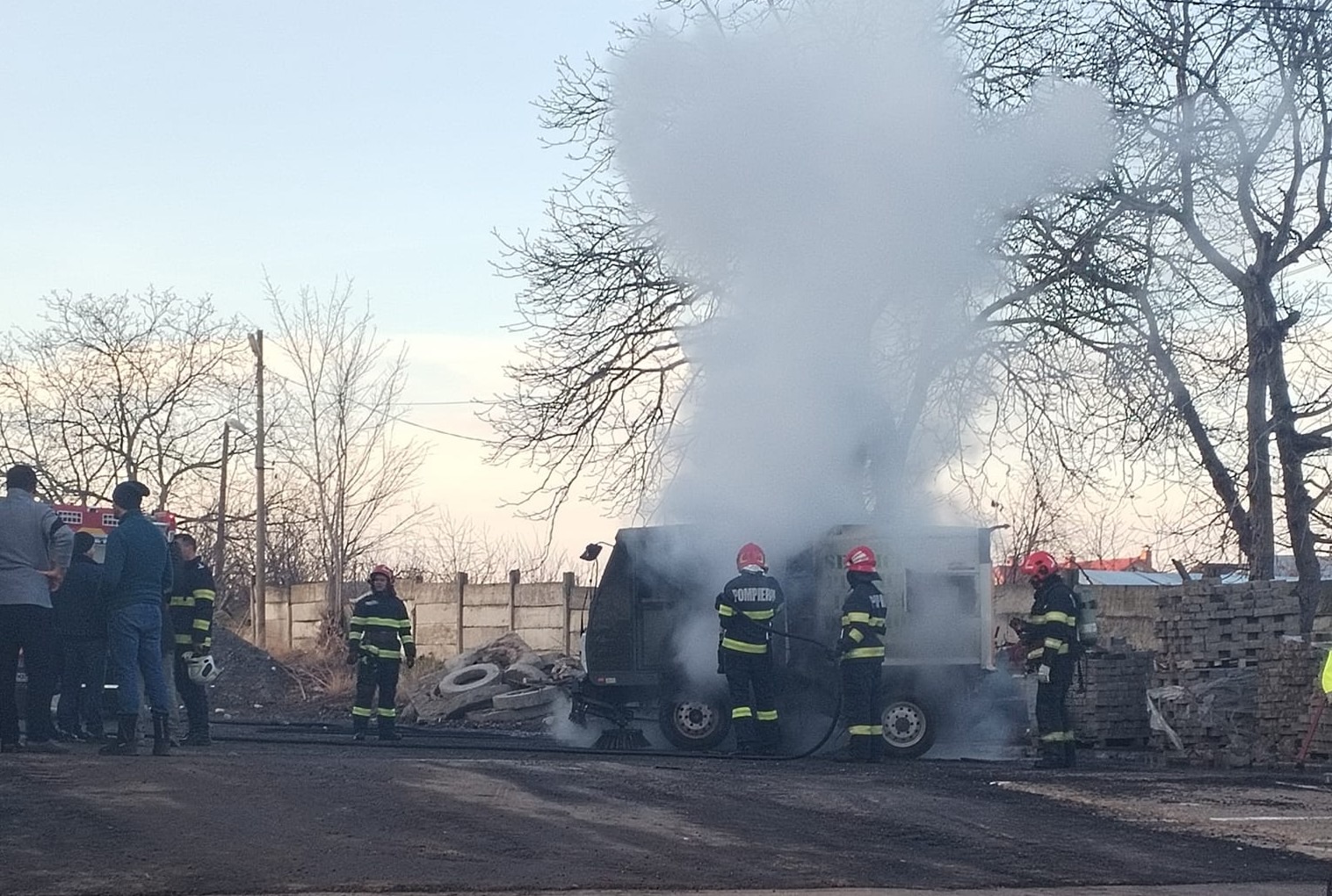 Un incendiu a izbucnit, marți, în curtea unei societăți din Dorohoi, județul Botoșani, iar la fața locului au fost chemați de urgență pompierii. Alarma a fost dată de un locatar de pe strada 1 Decembrie, care a văzut fumul ieșind din hala de mașini a societății Servicii Publice Locale Dorohoi și a sunat de urgență la 112.