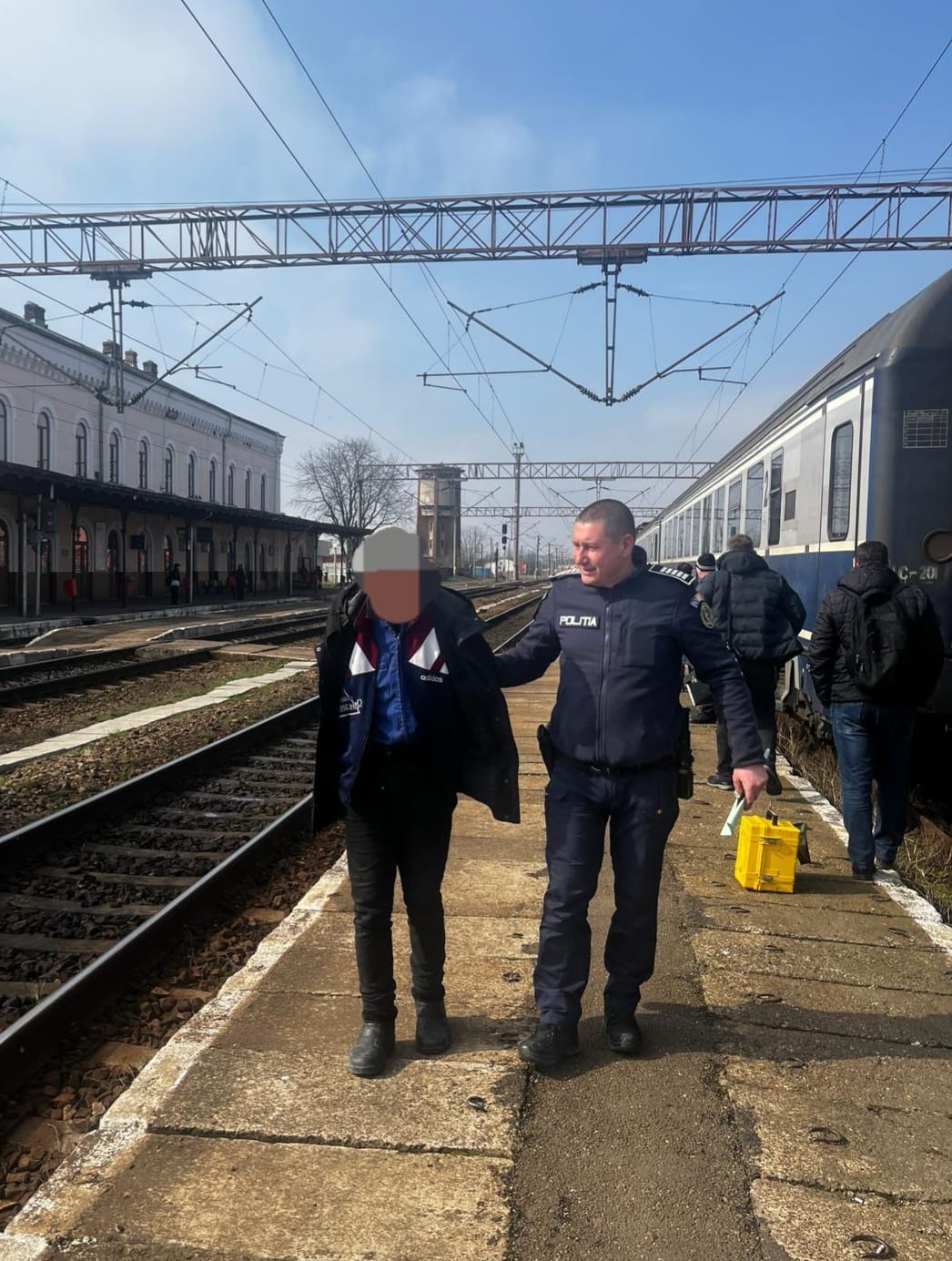 Ulterior, din cercetări s-a stabilit faptul că celălalt tânăr bănuit de comiterea faptei se află în trenul Botoșani-Iași, fiind interceptat la Verești, unde a fost scos din tren de către polițiștii din cadrul Biroului Județean de Poliție Transporturi.