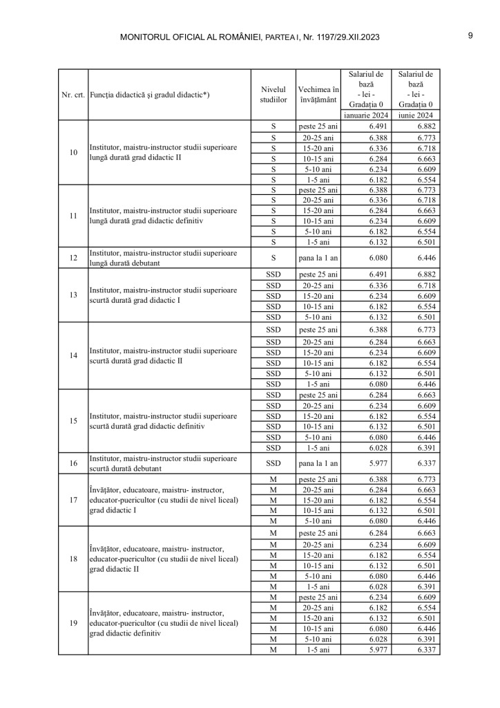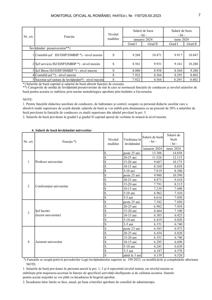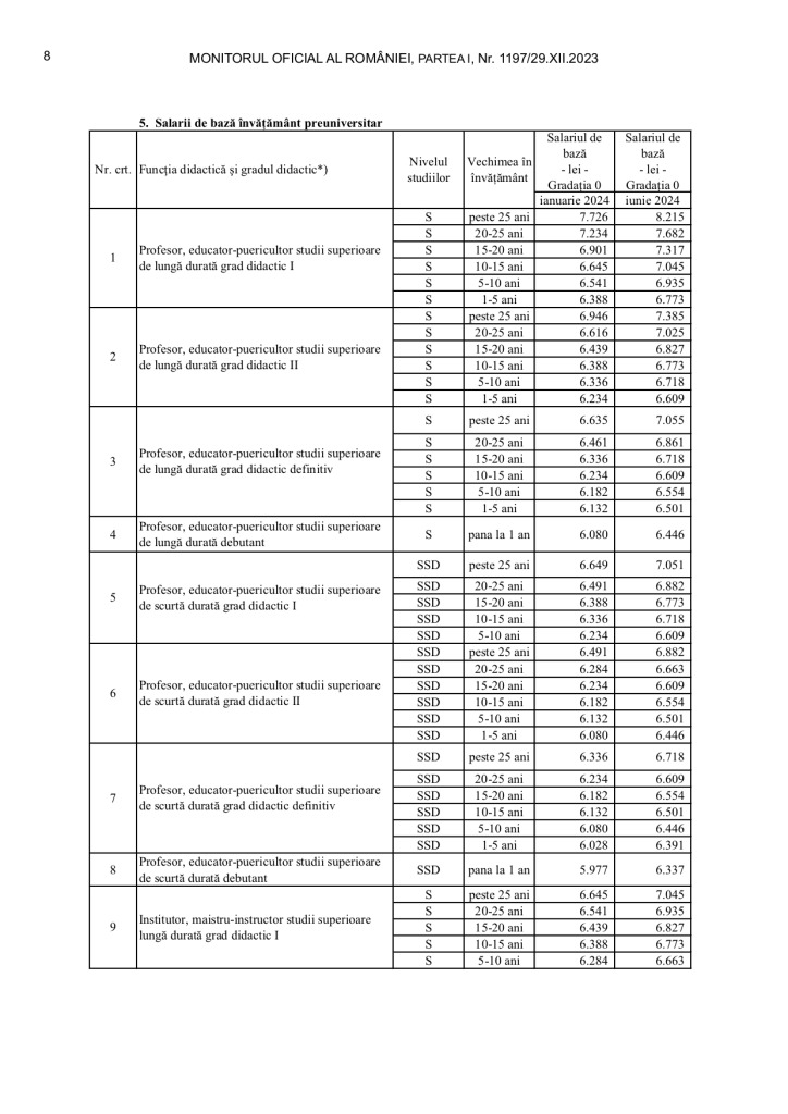 Începând cu 1 iunie, salariile profesorilor și ale angajaților din învățământ vor crește conform Ordonanței de Urgență a Guvernului nr. 128/2023, care prevede creșterea etapizată a salariilor. Majorarea din luna iunie va fi realizată conform grilelor aprobate de Executiv.
