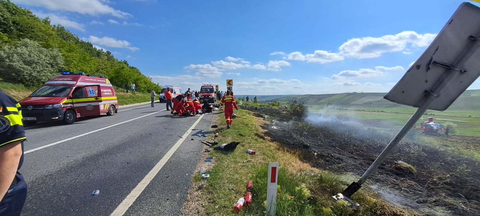 Potrivit reprezentanților ISU Vaslui, în accident au fost implicate două motociclete și un autoturism. În urma impactului dintre una dintre motociclete și autoturism, ambele au fost cuprinse de flăcări. Incendiul s-a extins și la vegetația din zonă. A doua motocicletă a încercat să evite impactul, dar fără succes.