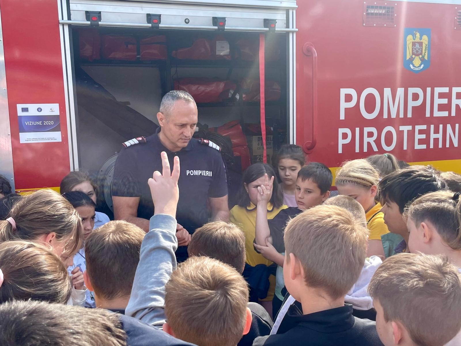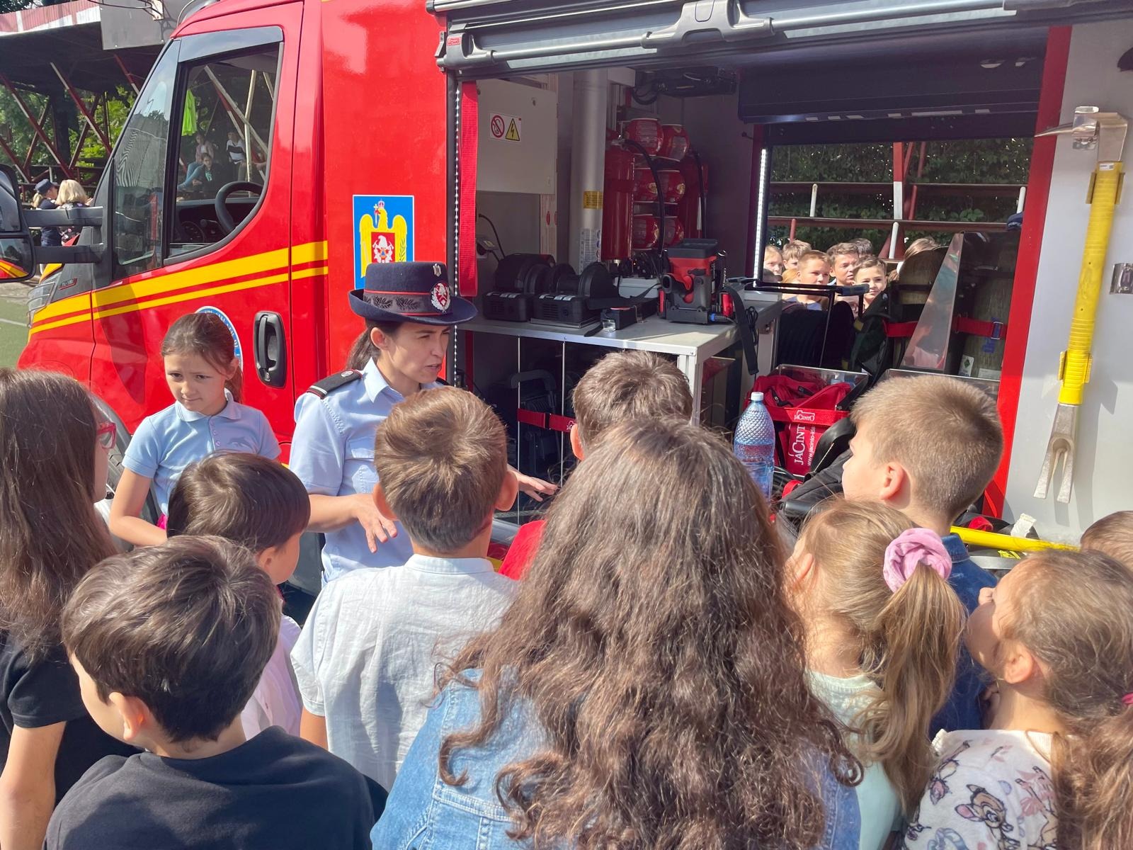 Copiii au aflat și în ce situații pompierii intervin cu autospecialele de stingere și cum se folosește fiecare accesoriu. Cei mai curajoși au testat presiunea furtunelor, simulând stingerea unui incendiu.