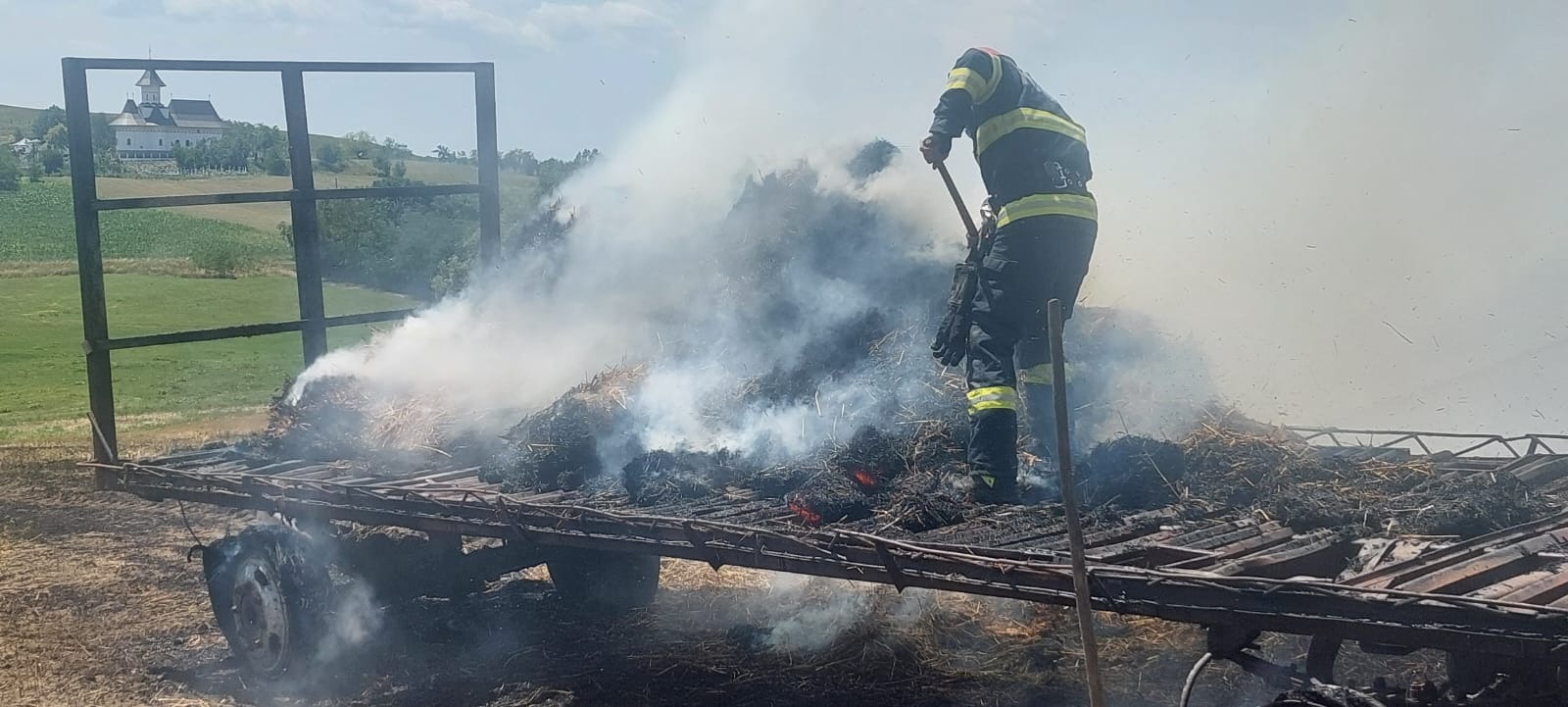 Peste cinci tone de furaje, o platformă auto și aproximativ 1000 de metri pătrați de vegetație uscată au ars astăzi pe un câmp din localitatea Buzeni. Incidentul pare să fi fost declanșat de scântei mecanice provenite de la un utilaj agricol utilizat pentru formarea baloților de paie.