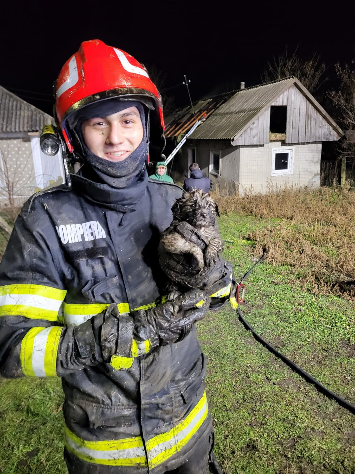 Din anexa afectată de flăcări, pompierii au reușit să salveze doi cățeluși, spre bucuria proprietarei.