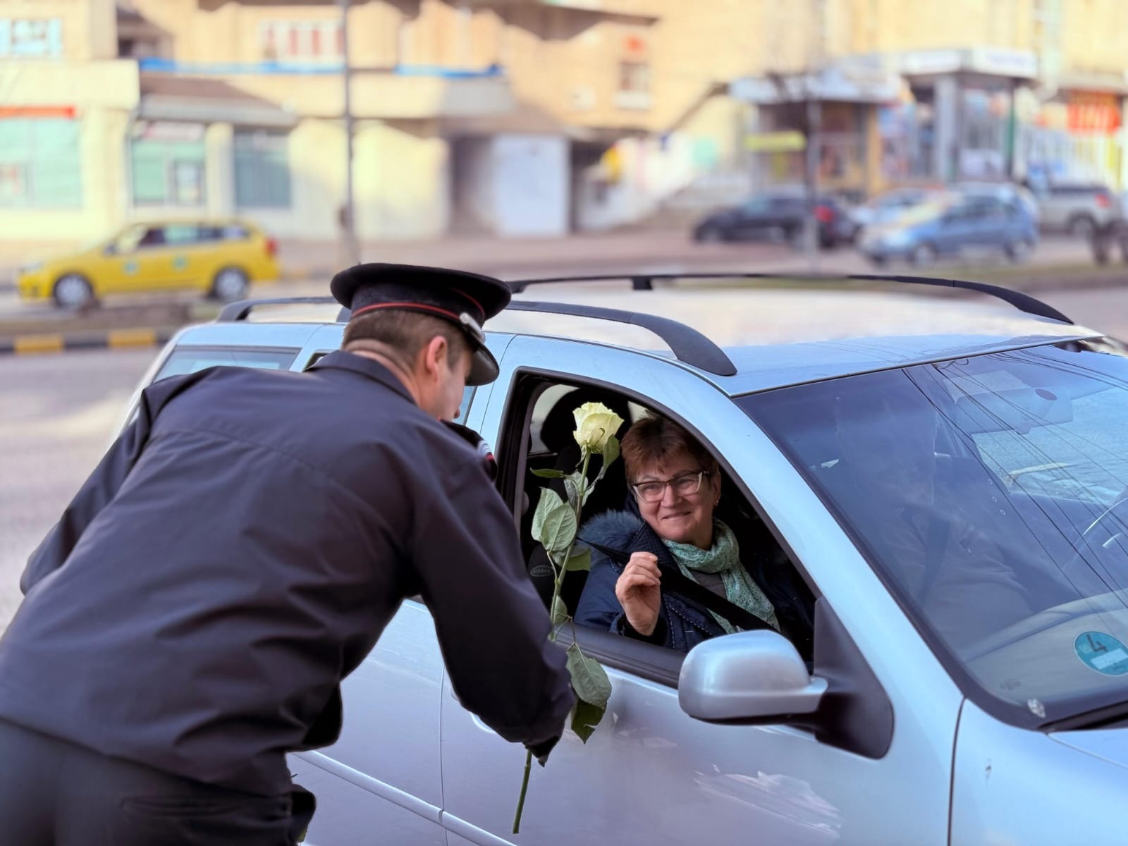 Gestul pompierilor a fost primit cu zâmbete și apreciere, multe dintre doamnele și domnișoarele din oraș răspunzând cu mulțumiri și emoție.