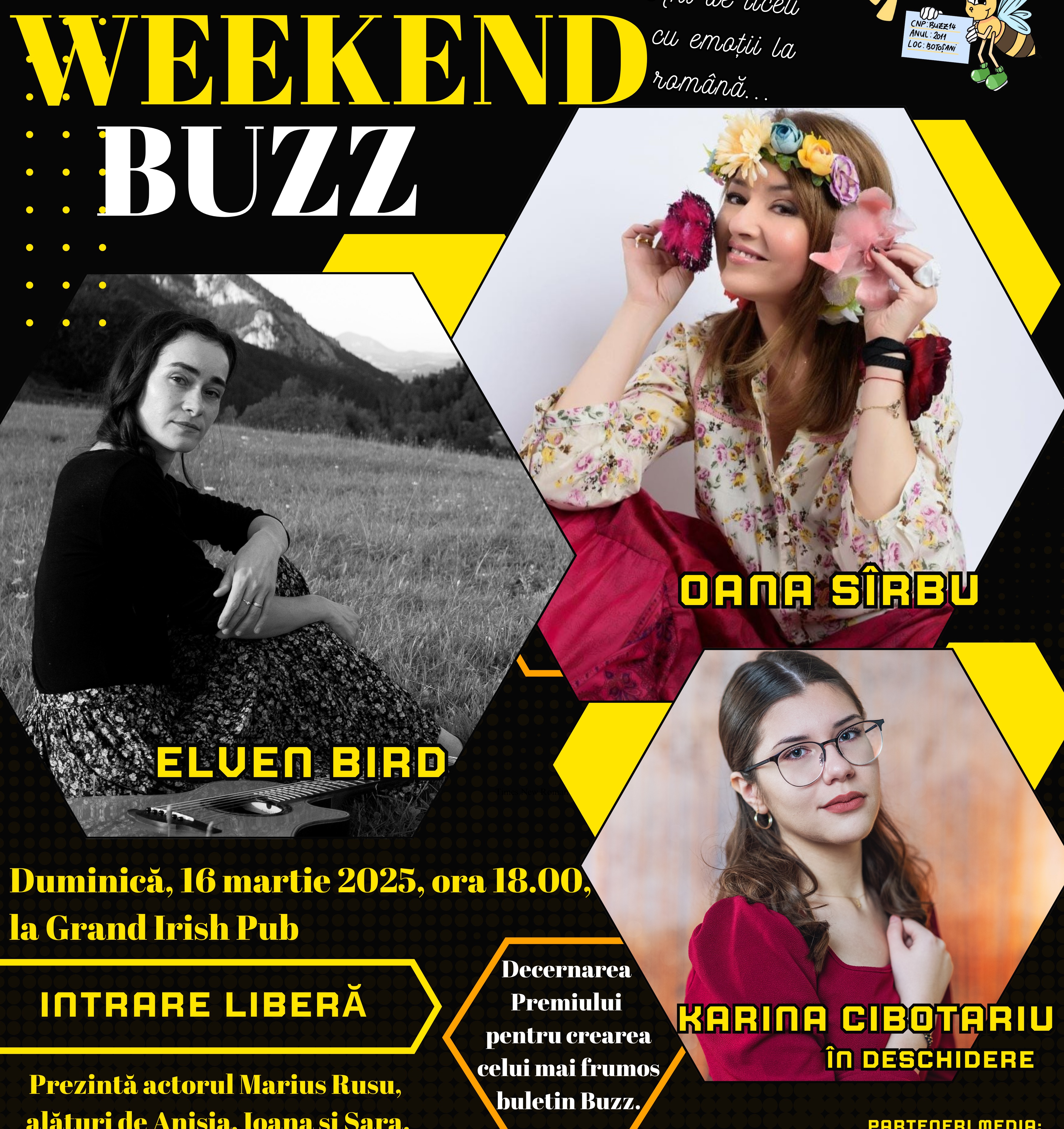 Spectacolul ce va avea loc la Grand Irish Pub, de la ora 18.00, va fi prezentat de actorul Marius Rusu, împreună cu membrele redacției Buzz, Ioana Ivaș, Anisia Amărioarei și Sara Iacob.