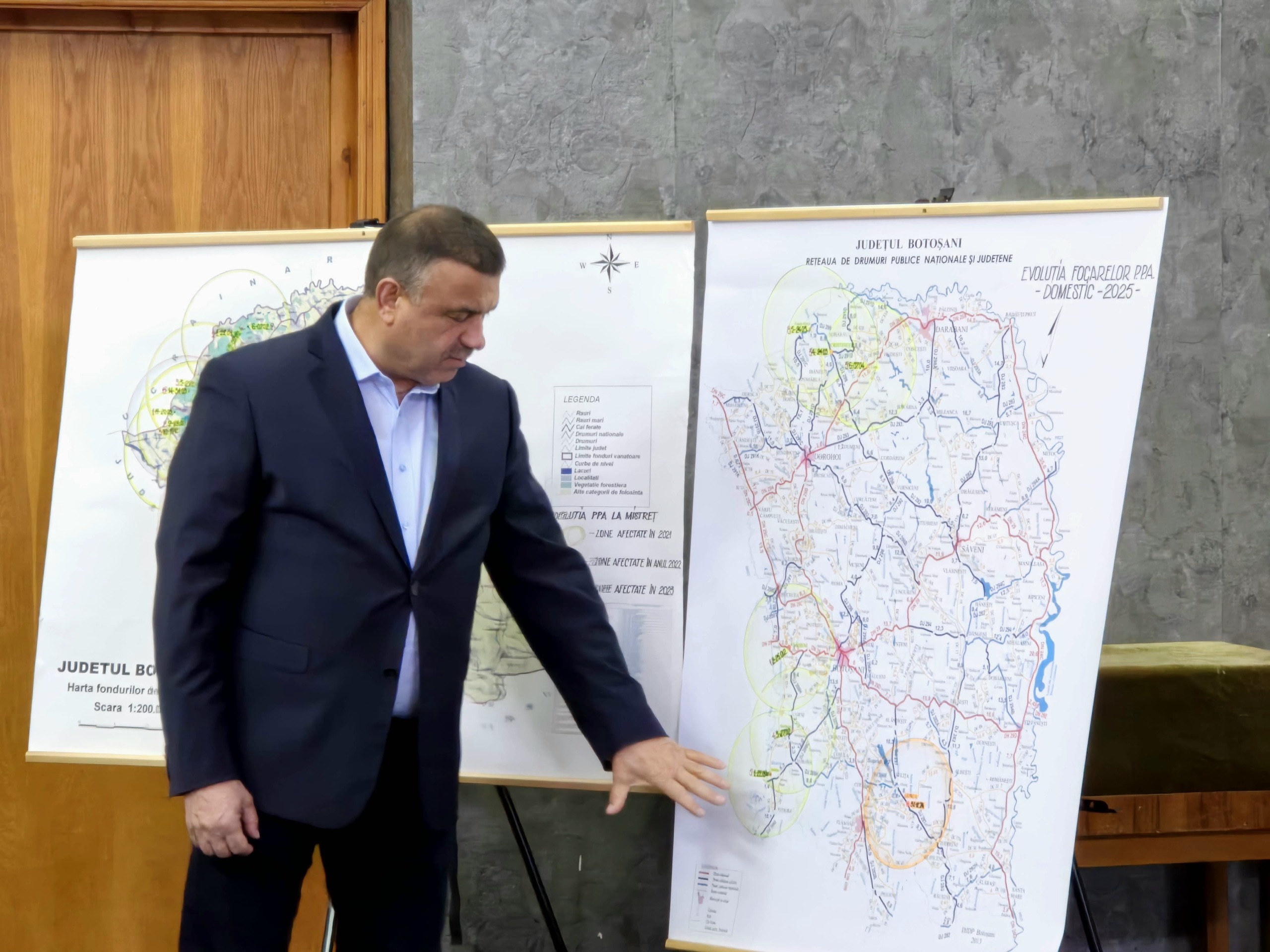 Miercuri, a avut loc o ședință a Centrului Local de Combatere a Bolilor (CLCB) Botoșani, în cadrul căreia au fost analizate măsurile necesare pentru limitarea răspândirii pestei porcine africane, în contextul confirmării unui nou caz de pestă porcină africană. Acesta a fost identificat la un mistreț găsit mort în zona Pădurea Dersca, localitatea Dersca, pe 2 aprilie.