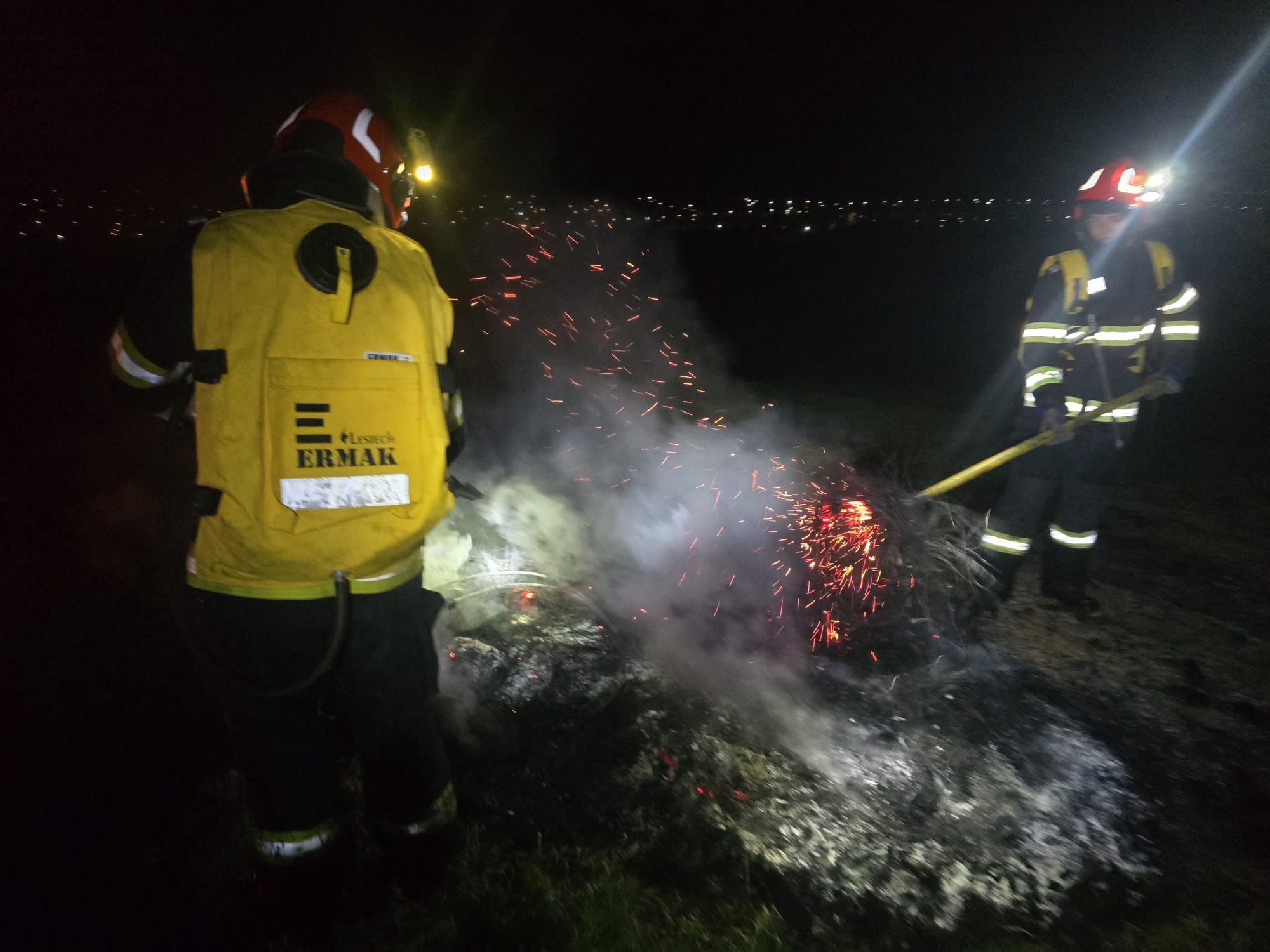 La Vlăsinești, vegetația uscată de pe aproximativ 0,5 hectare, dar și o cantitate însemnată de anvelope uzate au fost cuprinse de flăcări. La fața locului au intervenit echipaje de la Stația de Pompieri Săveni, sprijinite de Serviciul Voluntar pentru Situații de Urgență Vlăsinești. Intervenția promptă a salvatorilor a dus la evitarea unei tragedii: mai multe bovine aflate în apropierea focarului au fost salvate înainte ca incendiul să se extindă.