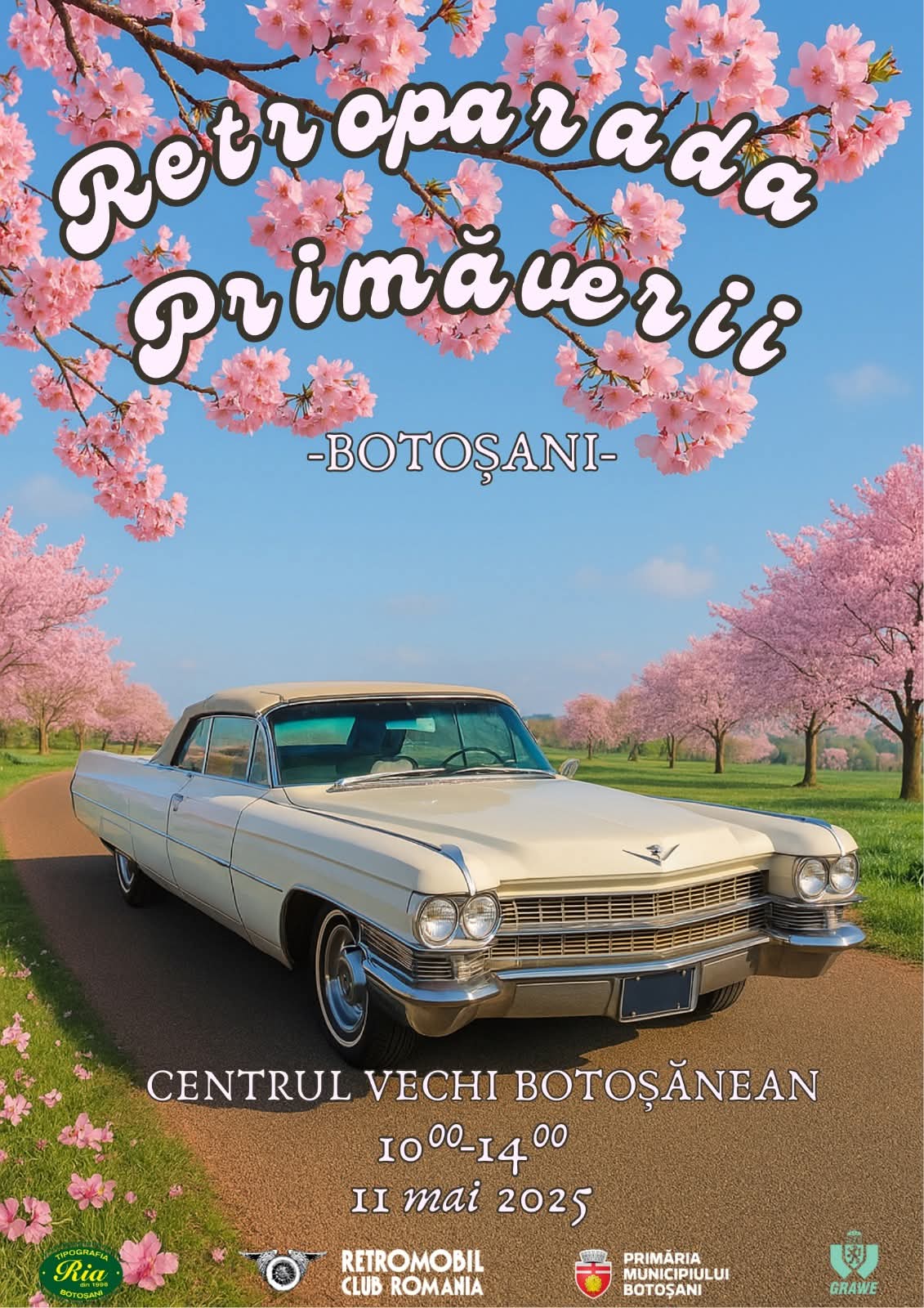Filiala Botoșani a Retromobil Club România organizează, pe 11 mai 2025, între orele 10:00 și 14:00, întâlnirea de primăvară a pasionaților de automobile de epocă. Evenimentul se va desfășura în Centrul Vechi al municipiului Botoșani.
