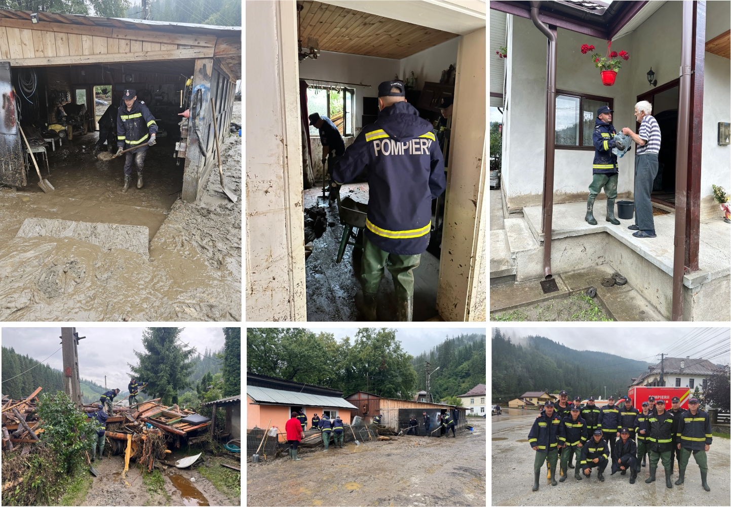 Echipele din Botoșani acționează la evacuarea apei și a nămolului din casele afectate, înlăturarea construcțiilor periculoase, recuperarea bunurilor și distribuirea de apă potabilă și alimente familiilor rămase fără resurse.