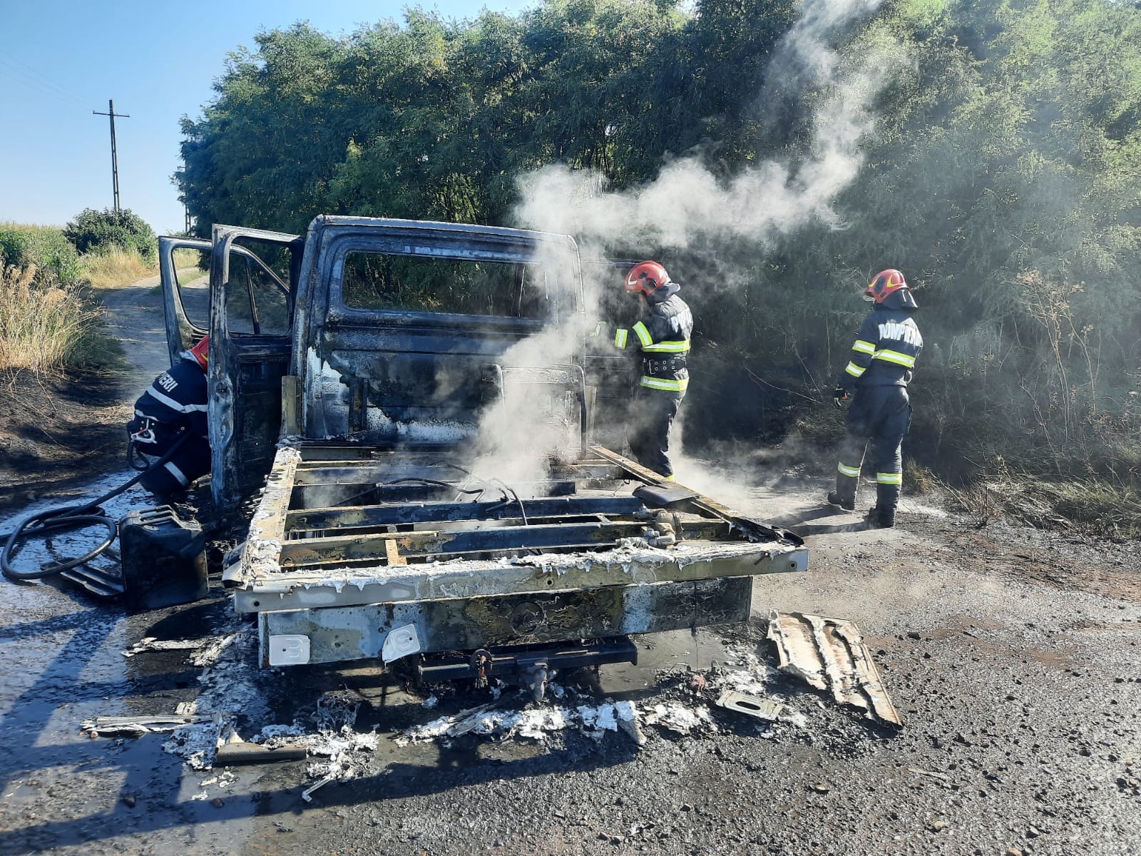 Miercuri după-amiază, o autoutilitară care circula prin localitatea Strahotin, comuna Dângeni, a fost cuprinsă de flăcări în mers. Șoferul a observat incendiul, a oprit imediat vehiculul, a coborât și a apelat numărul unic de urgență 112.