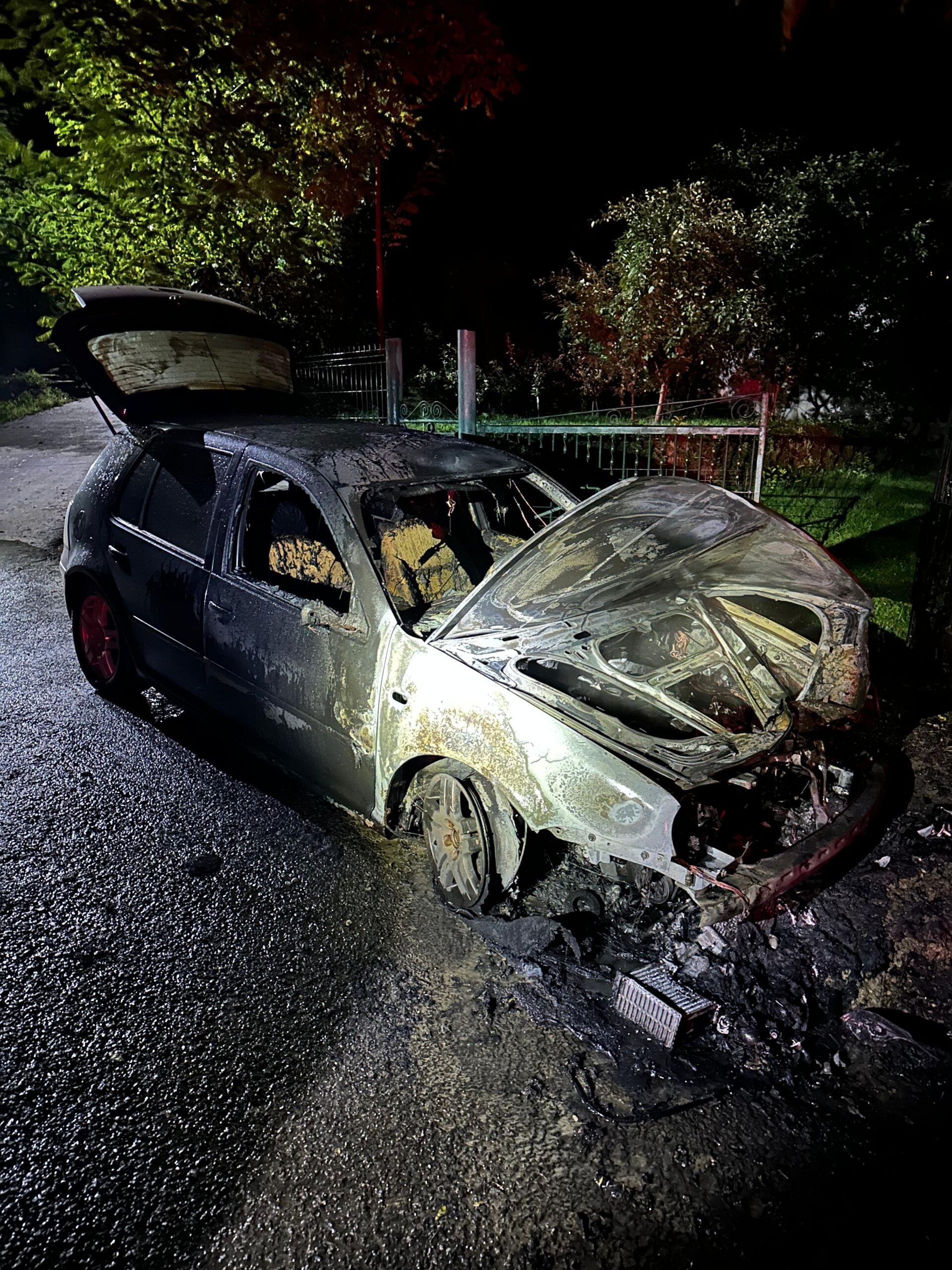 Un autoturism parcat în fața unei gospodării din localitatea Leorda a fost cuprins de flăcări, joi seară. Din fericire, nu au fost înregistrate victime.