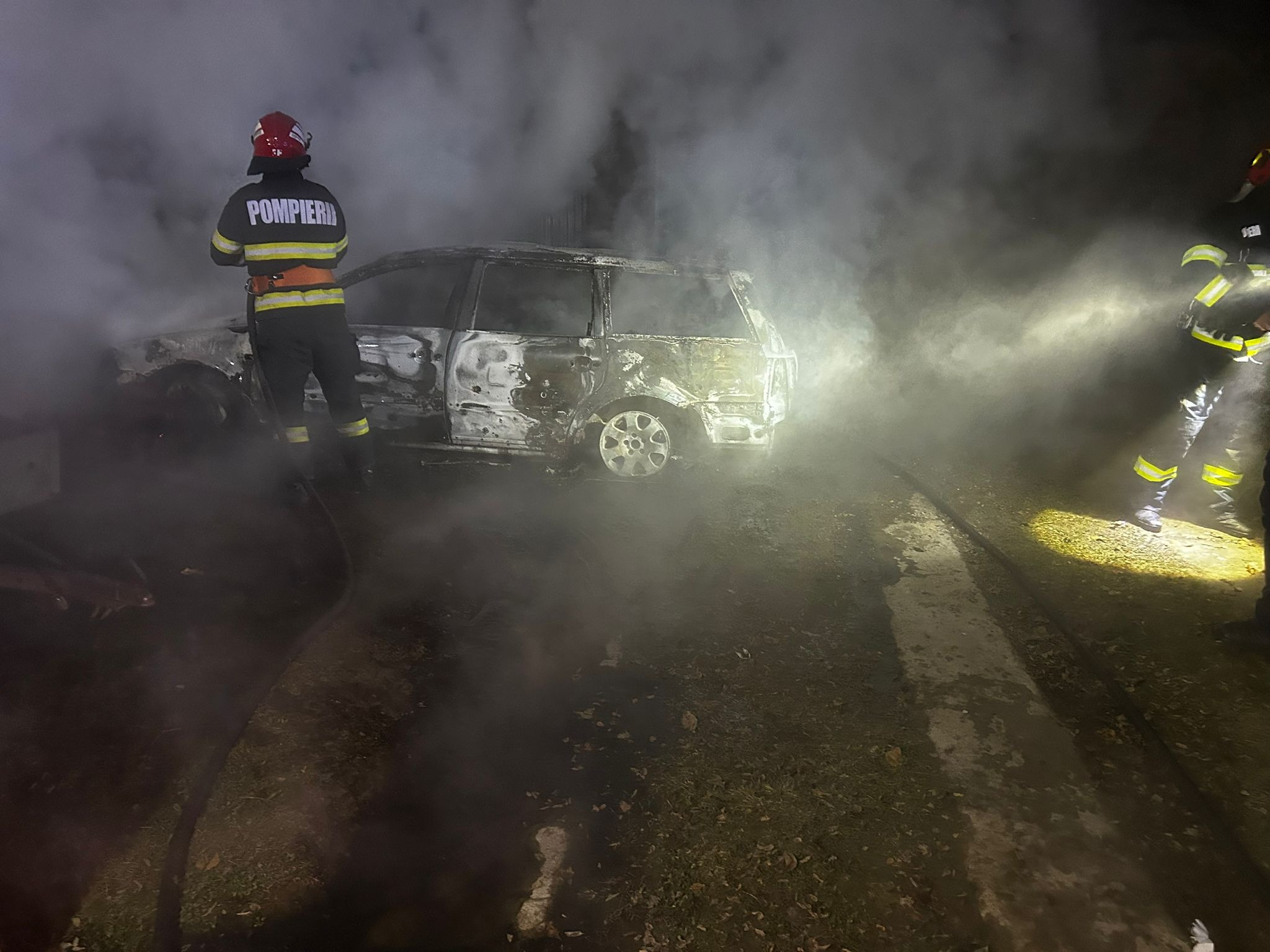 Un autoturism parcat într-o gospodărie din localitatea Copălău a fost mistuit de flăcări, duminică seară. Din fericire, nu au fost înregistrate victime.