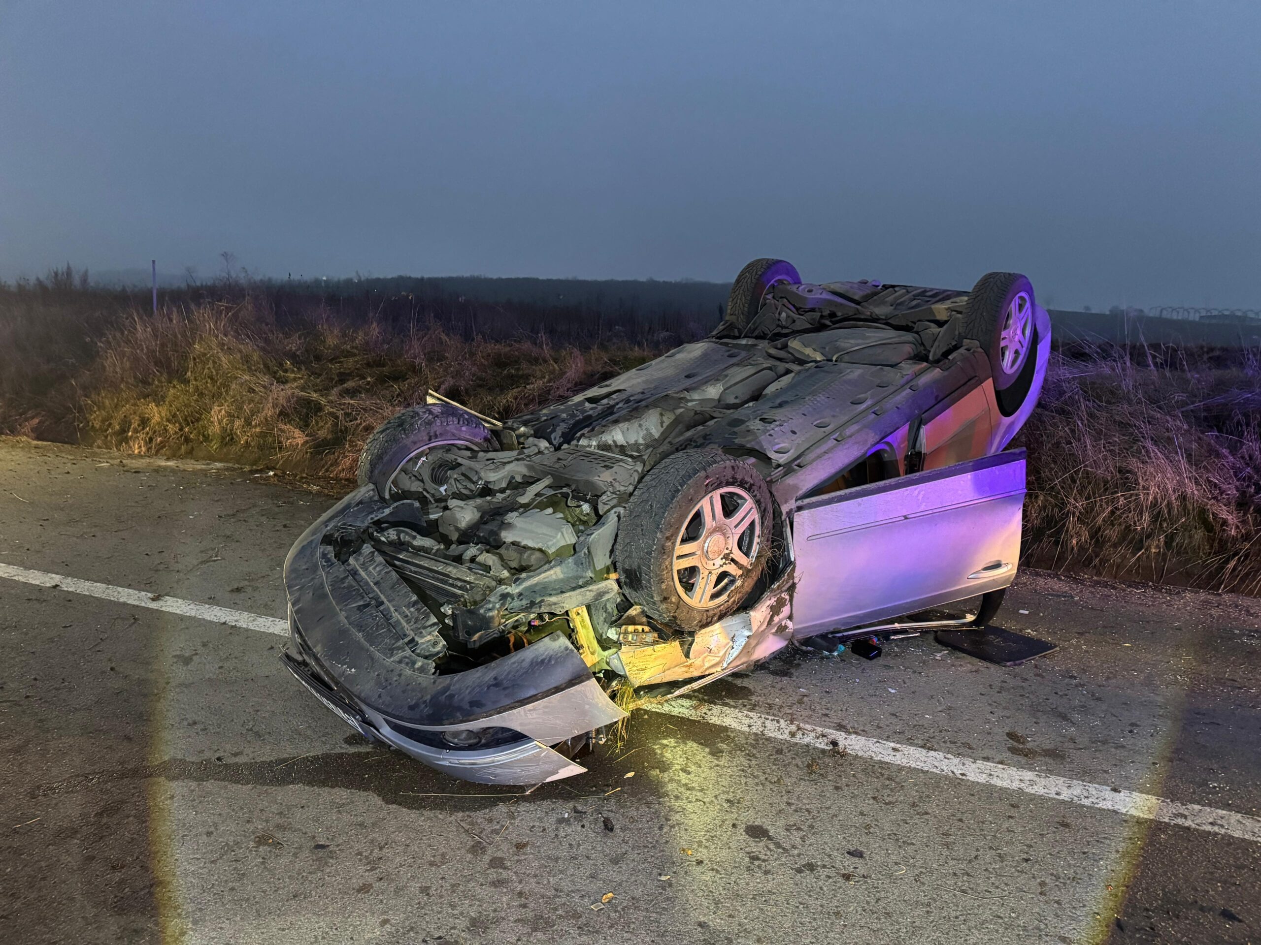 Un accident rutier s-a produs miercuri dimineață pe un drum din localitatea Bălușeni, unde un autoturism s-a răsturnat pe partea carosabilă. În eveniment a fost implicat un singur vehicul.