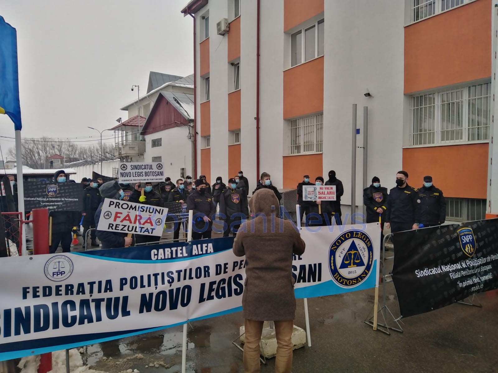 Acțiunea este organizată de Sindicatul Novo Legis Botoșani și Sindicatul Național al Polițiștilor de Penitenciare filiala Botoșani, ce reprezintă un număr de peste 280 de angajați. Sindicaliștii solicită adoptarea statutului polițistului de penitenciare și plata orelor suplimentare.
