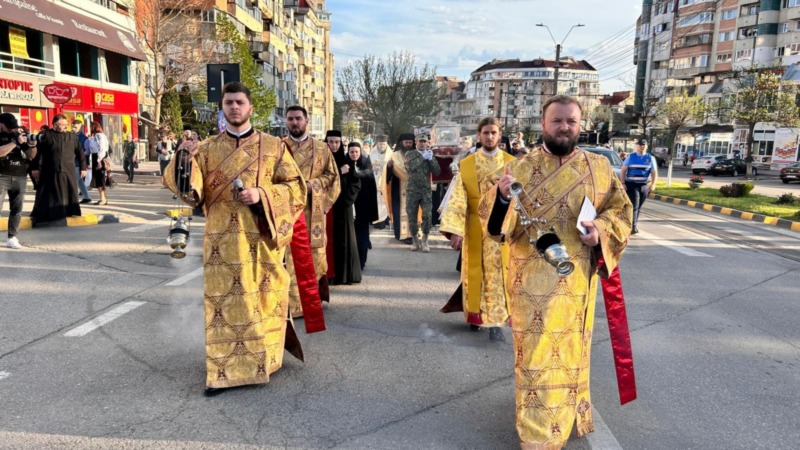 Pelerinaj cu moaștele Sfântului Gheorghe Pelerinul pe străzile municipiului Botoșani, în a treia zi de Paște