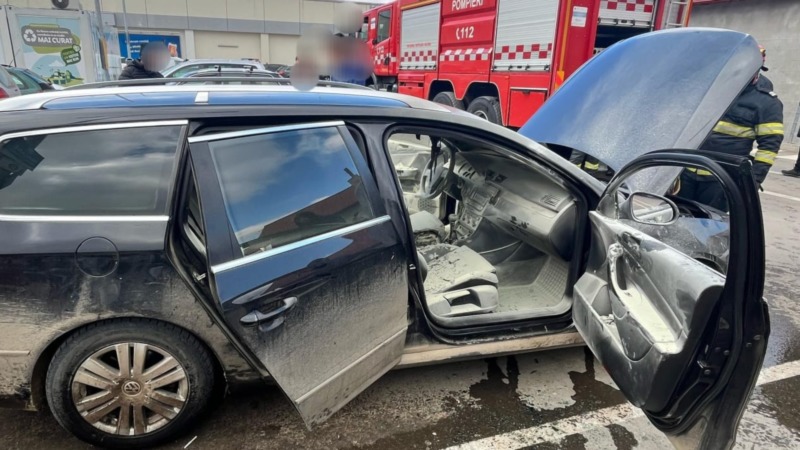 Mașină în flăcări în parcarea unui supermarket din Dorohoi