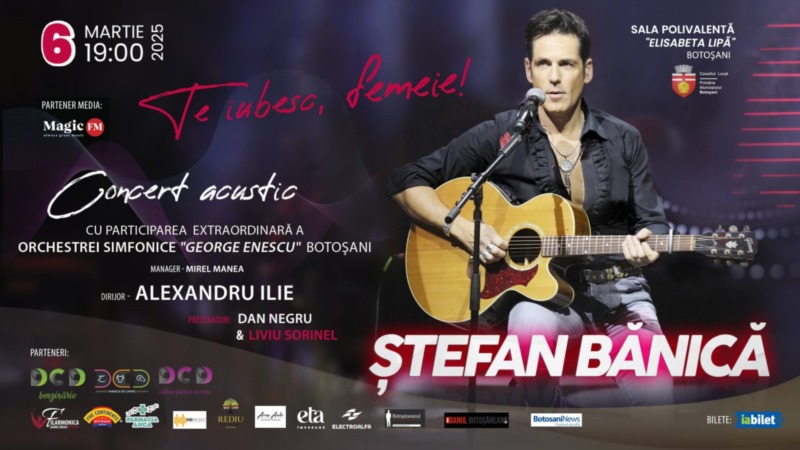 Au fost puse în vânzare biletele pentru concertul lui Ștefan Bănică alături de Filarmonica Botoșani
