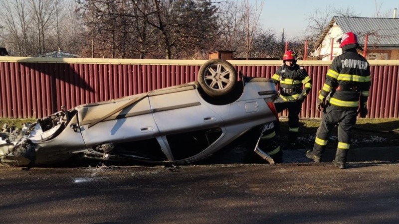 Accident pe un drum din județul Botoșani. Un bărbat a fost rănit după ce s-a răsturant cu mașina pe cupolă