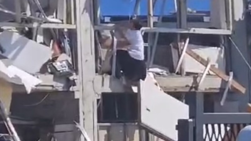 Femeie filmată în timp ce se salvează dintre dărâmături, în urma exploziei de la Dedeman
