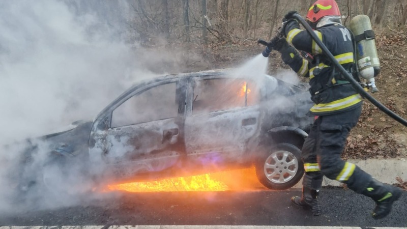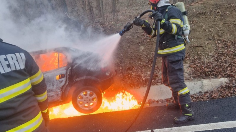 O mașină a ars ca o torță după ce a fost implicată într-un accident, la Zăicești. Două femei s-au salvat