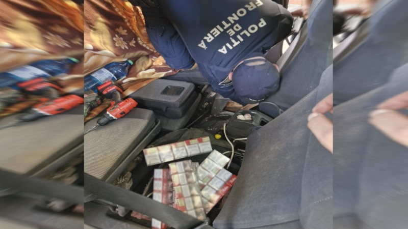 Țigări și alcool ascunse în podeaua unei mașini, descoperite la PTF Stânca. Șofer amendat cu 10.000 de lei