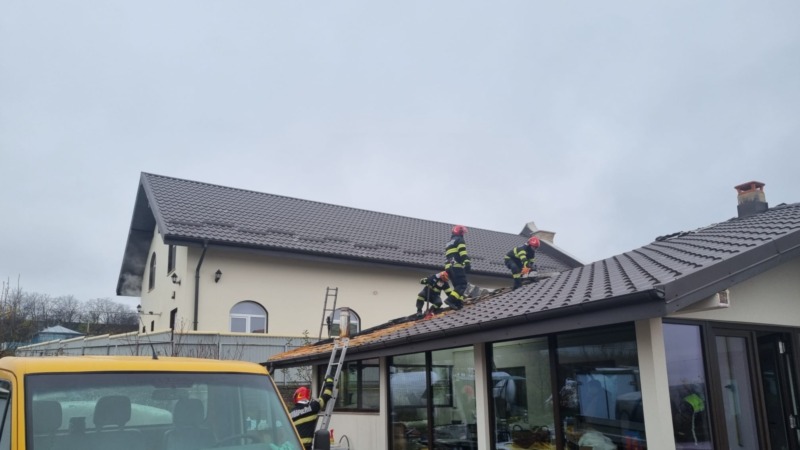 Incendiu la Unțeni. Acoperișul unui foișor lipit de casă a luat foc din cauza unui coș de fum defect