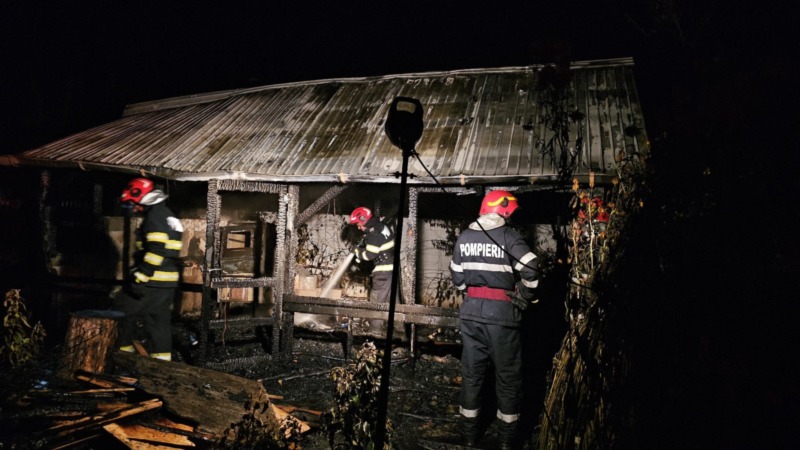 Depozit de furaje cuprins de flăcări în Păun. Poliția suspectează incendiere intenționată