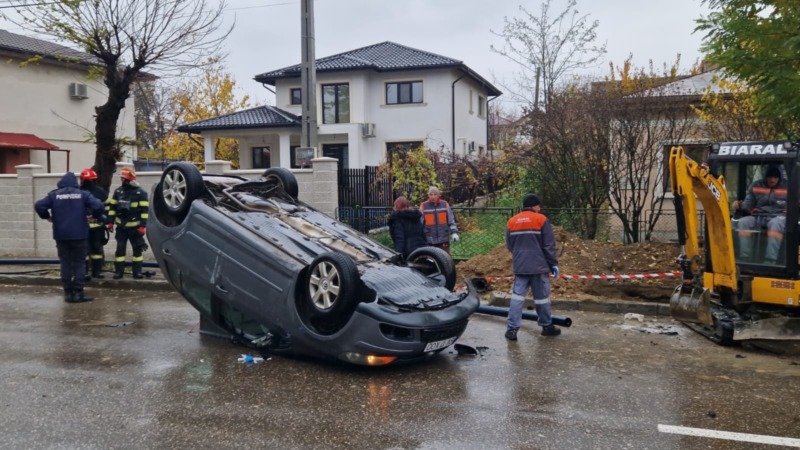 Șoferul din Suceava care s-a răsturnat cu mașina pe strada Tudor Vladimirescu a fost amendat și a rămas fără permis