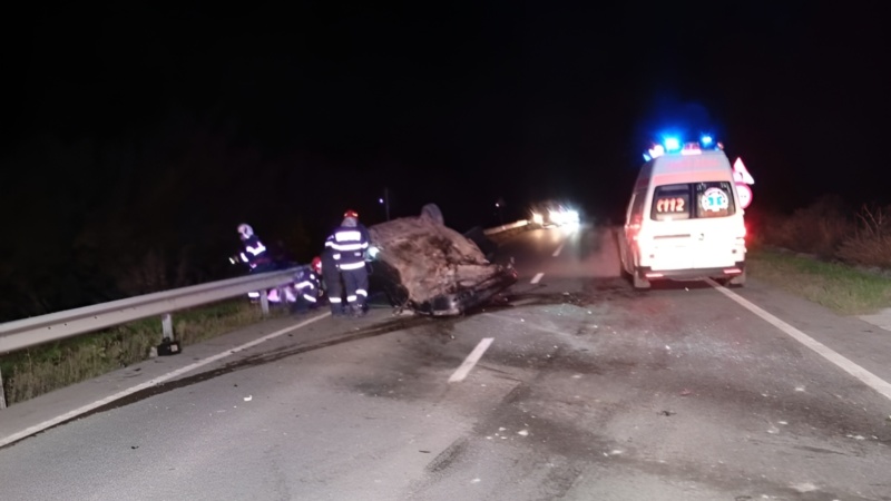 Accident spectaculos la Trușești: o mașină s-a răsturnat pe cupolă, după ce a lovit un autoturism parcat