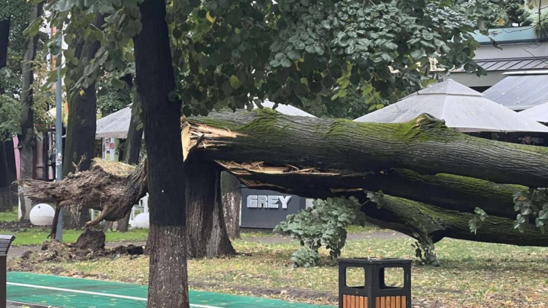 Copac prăbușit pe Pietonalul Unirii din Botoșani. „Noroc că nu era nimeni în preajmă”