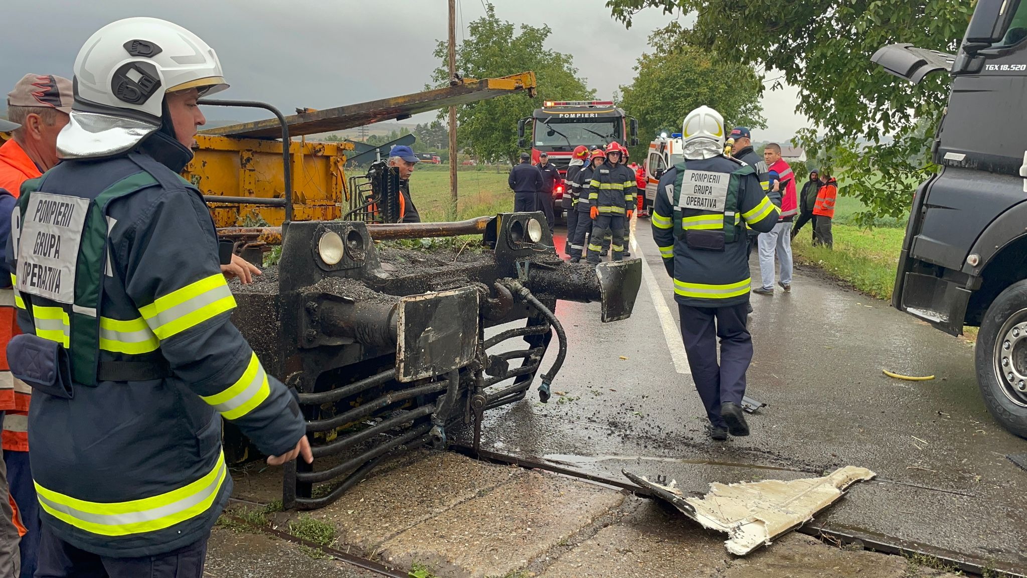 La fața locului s-au deplasat trei echipaje de pompieri cu o autospecială de descarcerare grea, una de stingere și un echipaj SMURD, dar și o ambulanță din cadrul Serviciului Județean de Ambulanță. Pompierii au asigurat zona pentru prevenirea unei situații de urgență.