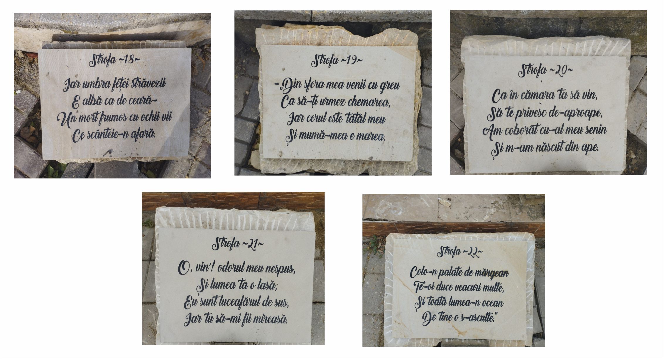 Pietre care poartă versurile marelui poet Mihai Eminescu au fost înșirate prin municipiul Botoșani. Este vorba despre versurile poeziei „Luceafărul”, inscripționate pe 100 de pietre și montate în Centrul Istoric. Acestea cuprind cele 89 de versuri ale poeziei, iar două dintre ele conțin informații despre proiectul prin intermediul căruia au fost realizate.