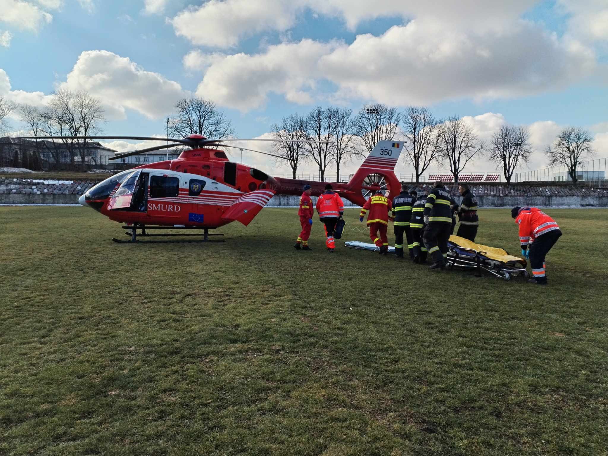 Elicopterul SMURD a fost solicitat în mod urgent duminică, în județul Botoșani, de către personalul medical pentru a prelua o persoană în stare gravă. Aeronava a aterizat pe stadionul municipal din Dorohoi pentru a prelua un bărbat în vârstă de 82 de ani, diagnosticat cu bloc atrioventricular total și tahicardie.