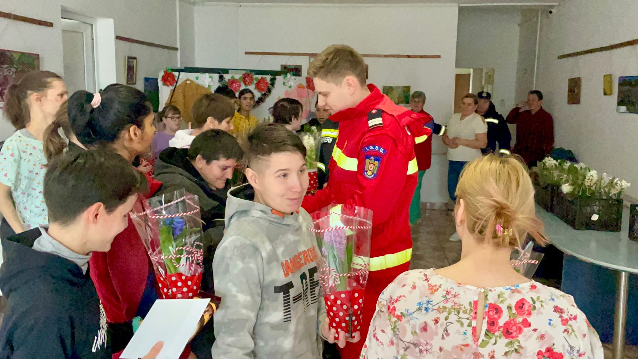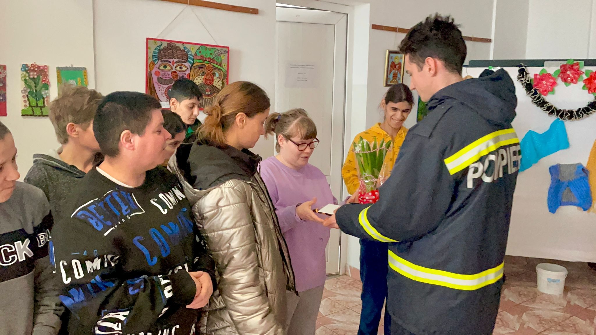 Ziua Internațională a Femeii a fost marcată și în centrele de îngrijire și asistență a persoanelor cu dizabilități, unde un gest simbolic a reușit să aducă zâmbete pe chipurile doamnelor care beneficiază de aceste servicii. Și asta pentru că pompierii botoșăneni le-au oferit, în numele tuturor colegilor din județ, câte o floare, o felicitare și o surpriză dulce.