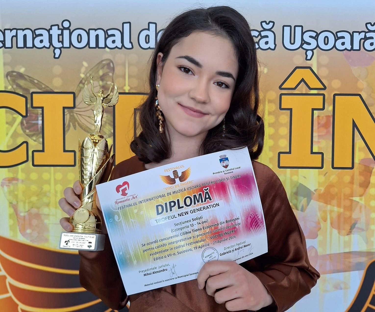 Botoșăneanca Tiana Cilibiu a obținut Trofeul New Generation la Festivalul Voci de Îngeri, în cadrul celei de-a VII-a ediții desfășurate la Suceava în weekendul 19-21 aprilie 2024. Evenimentul grandios a avut loc în sala teatrului „Matei Visniec” și a fost organizat de Asociația Culturală „Romantic Art”, condusă de domnii Gabriela și Andrei Morar, în parteneriat cu Primăria și Consiliul Local Suceava, Radio România Iași și Fly Music.