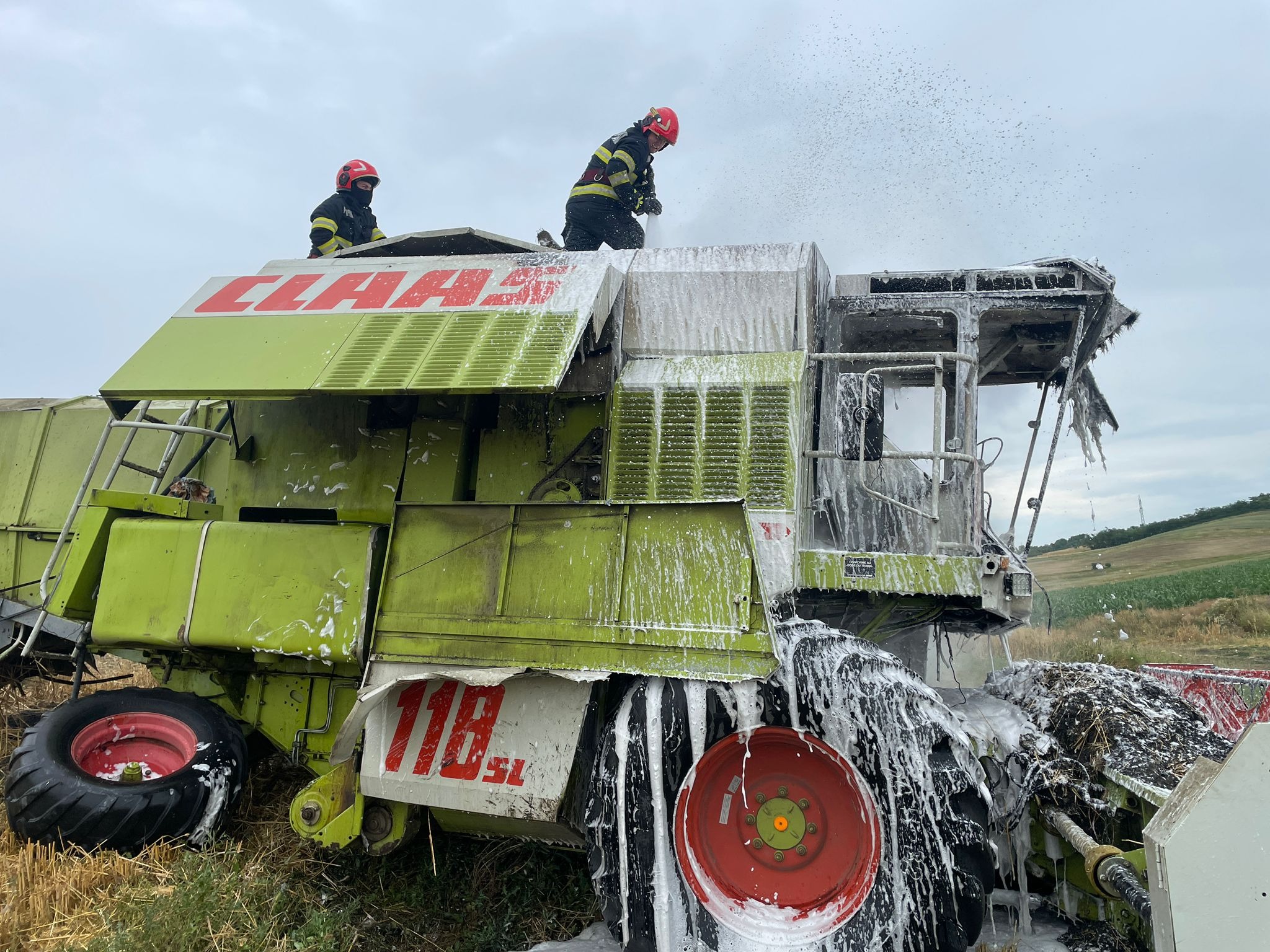 Șoferul utilajului a observat fum ieșind din compartimentul motor și a oprit imediat combina, încercând să stingă incendiul. În ajutorul său a intervenit o femeie aflată în apropiere, care a sunat la 112, după ce a constatat că flăcările nu puteau fi controlate.