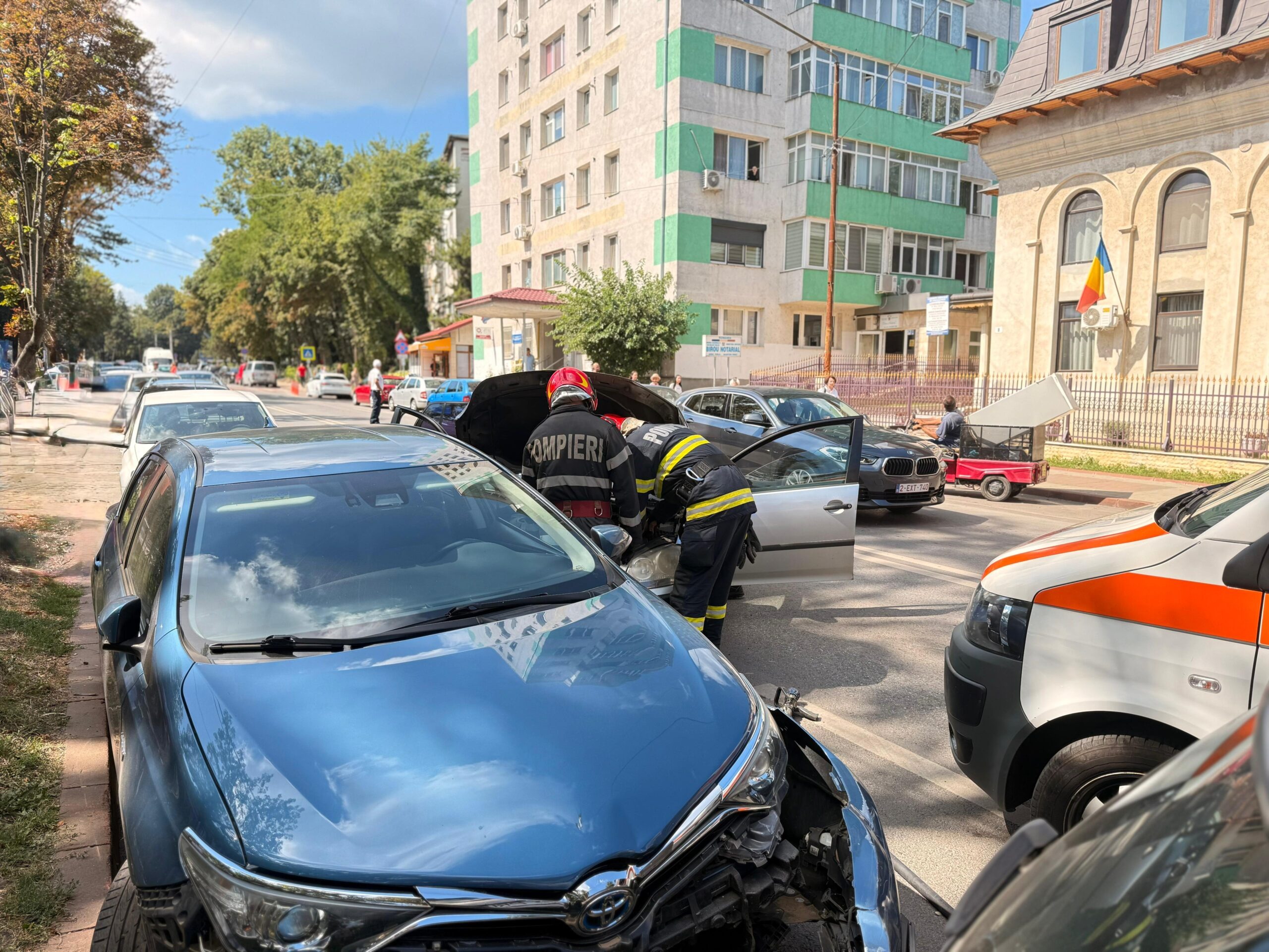 Un accident rutier s-a produs miercuri, pe strada Marchian din municipiul Botoșani, după ce unui șofer i s-a făcut rău la volan. Mașina pe care o conducea a ieșit de pe carosabil și a lovit alte două autoturisme parcate.