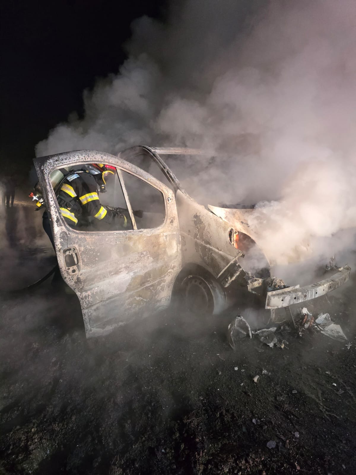 În timp ce se deplasa pe șosea, șoferul a observat fum ieșind din compartimentul motor, a oprit vehiculul și a ieșit imediat din interior împreună cu cei doi pasageri. Bărbatul a încercat să stingă incendiul cu mijloace proprii, însă flăcările s-au extins rapid, fiind nevoit să solicite sprijinul pompierilor prin numărul de urgență 112.