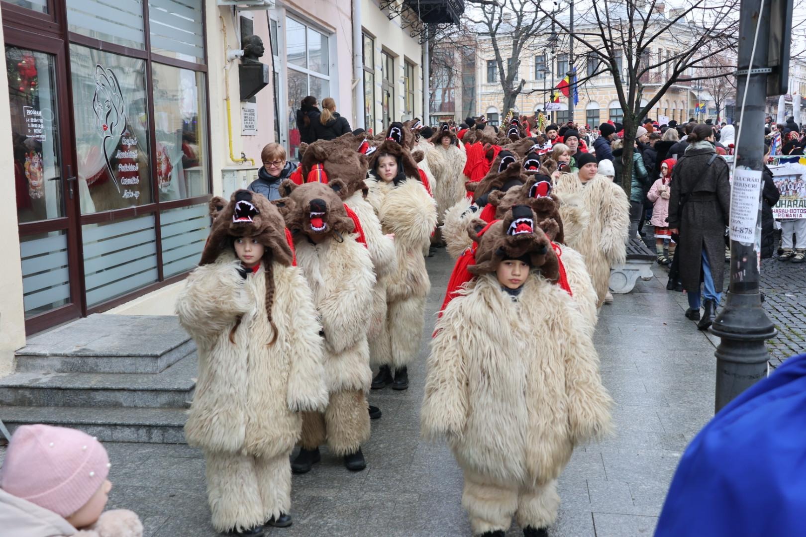 Un impact deosebit asupra publicului, mai ales asupra copiilor, l-a avut alaiul de urși, care a străbătut străzile municipiului. Jocul Ursului nu este doar o coregrafie spectaculoasă, ci un ritual arhaic de exorcizare a anului care se încheie. Cei care poartă blănuri de zeci de kilograme nu interpretează un rol, ci devin, pentru câteva ore, simboluri ale forțelor naturii, într-un ceremonial cu rădăcini adânci în credințele populare.