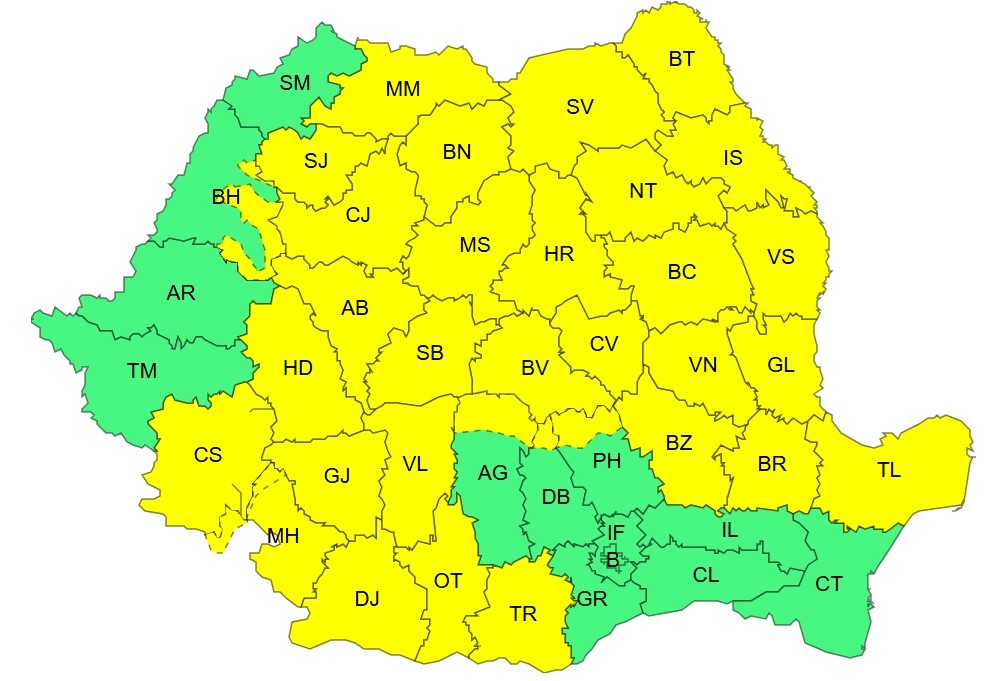 În jumătatea nordică a Moldovei și în Bucovina este în vigoare un cod galben de vânt, cu rafale ce pot atinge viteze de 50–70 km/h. Cerul va fi variabil, cu înnorări locale și precipitații slabe, trecătoare.