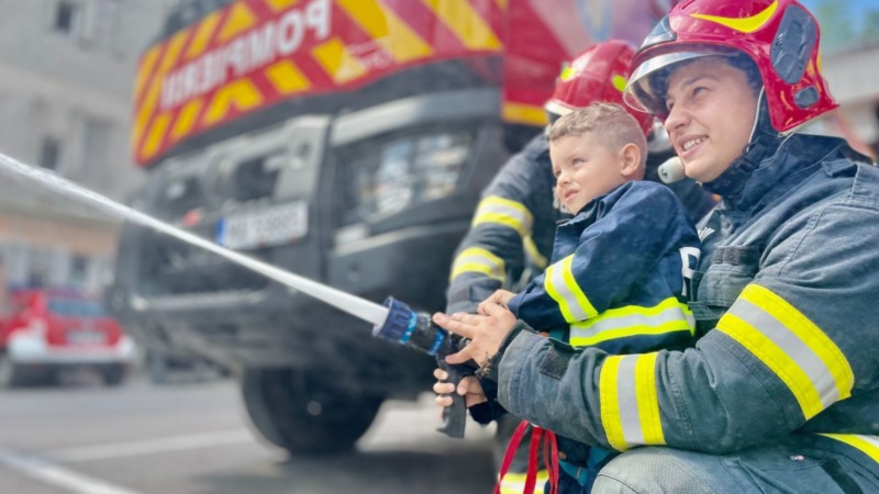 Surpriză plină de emoție făcută de pompierii botoșăneni unui băiețel de patru ani