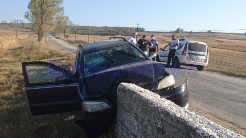 Accident la Botoșani provocat de un șofer de 73 de ani. A intrat cu mașina într-un parapet de pe marginea drumului