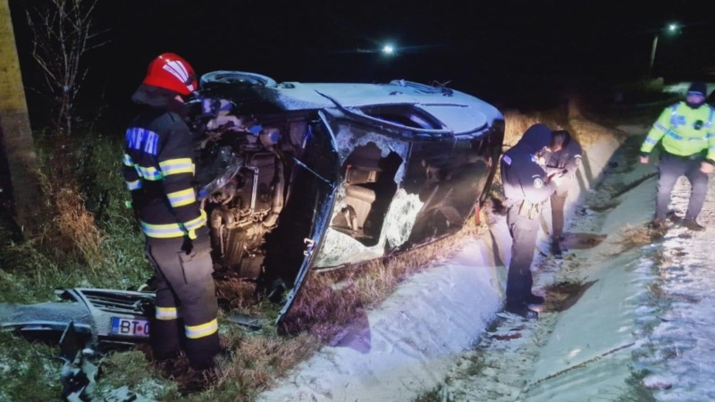 Accident grav pe un drum din județul Botoșani. O mașină s-a răsturnat; patru persoane au ajuns la spital