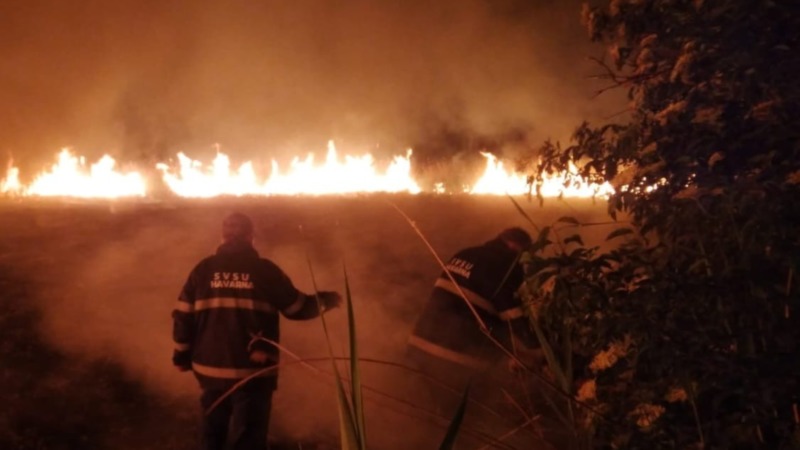 15 hectare de stuf și vegetație uscată curpinse de flăcări. Casele unor botoșăneni, la un pas de a lua foc pentru a t...